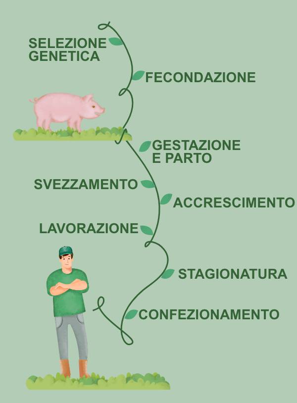 I suini Fumagalli nascono e crescono nei nostri allevamenti. Questo ci assicura una tracciabilità completa e capillare, come nessun altro. Raccogliamo così molti più dati su ciascun lotto di produzione: dalla nascita dell’animale fino al confezionamento.